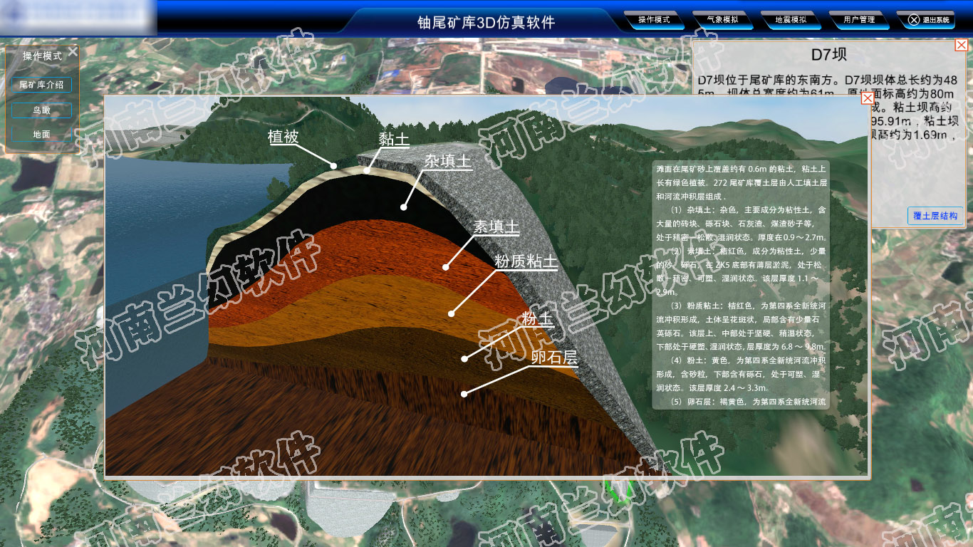 尾礦災(zāi)害治理項目是環(huán)境保護(hù)類工程,隨著環(huán)境保護(hù)力度的不斷加大,災(zāi)害治理項目紛紛上馬,為了說明災(zāi)害治理項目的歷史、危害、治理方案,并且能夠直觀可視化的方式展示出來。我司承接了某尾礦庫三維虛擬仿真項目。